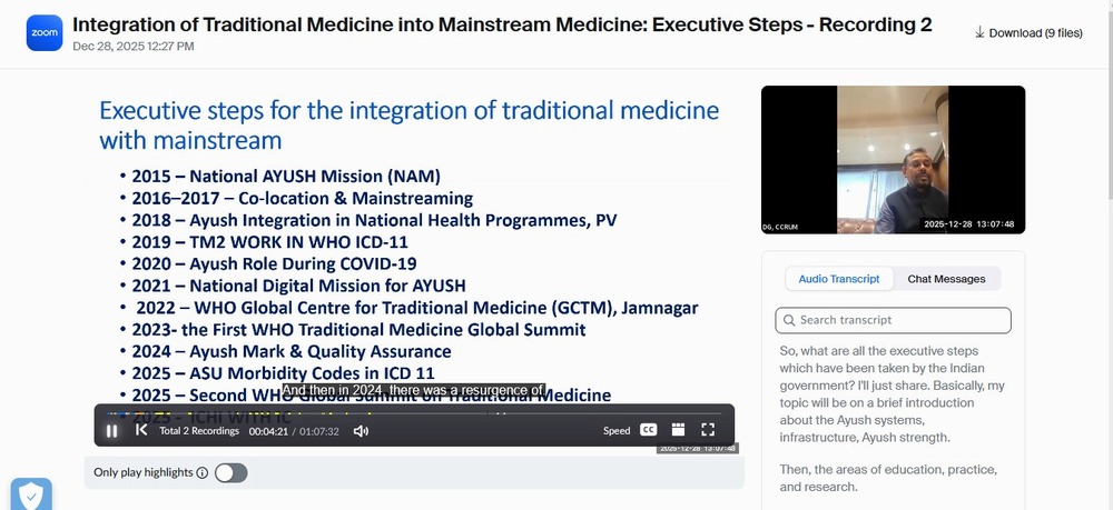 وی با بیان این مطلب که در کشور هند بیش از 50 هزار ارائه دهنده خدمات طب سنتی یونانی، 253 بیمارستان طب یونانی و 54 کالج طب یونانی وجود دارد؛ پیرامون فعالیت های گسترده وزراتخانه آیوش در استانداردسازی داروهای طب سنتی، تأسیس کتابخانه بزرگ الکترونیک منابع طب سنتی، تأسیس مرکز همکار سازمان بهداشت جهانی در زمینه طب های سنتی و نیز تولید برنامه های کاربردی برای تلفن همراه در حوزه طب سنتی صحبت کرد.