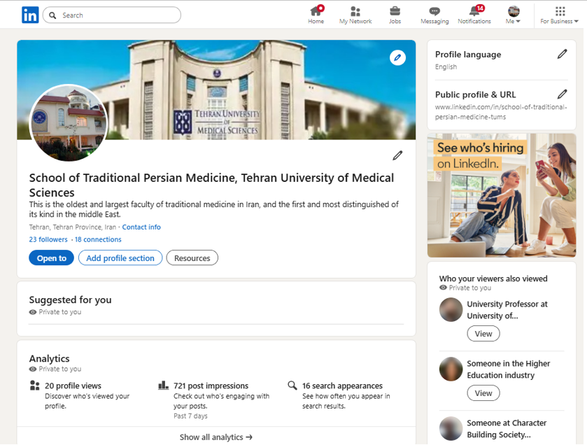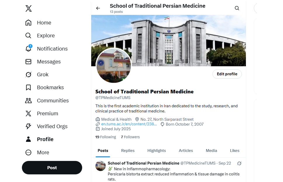راهاندازی صفحه رسمی دانشکده طب ایرانی در دو پایگاه لینکدین و اکس